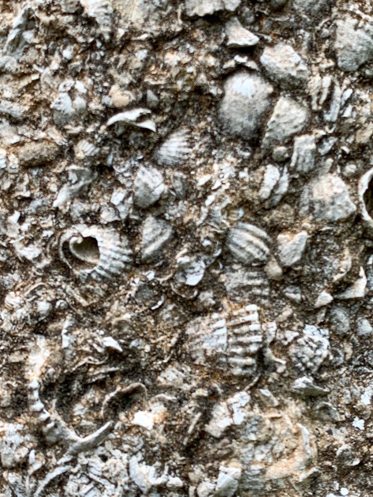 Und wenn man genau hinschaut, kann man an fast allen Säulen das Baumaterial erkennen: Muschelkalk