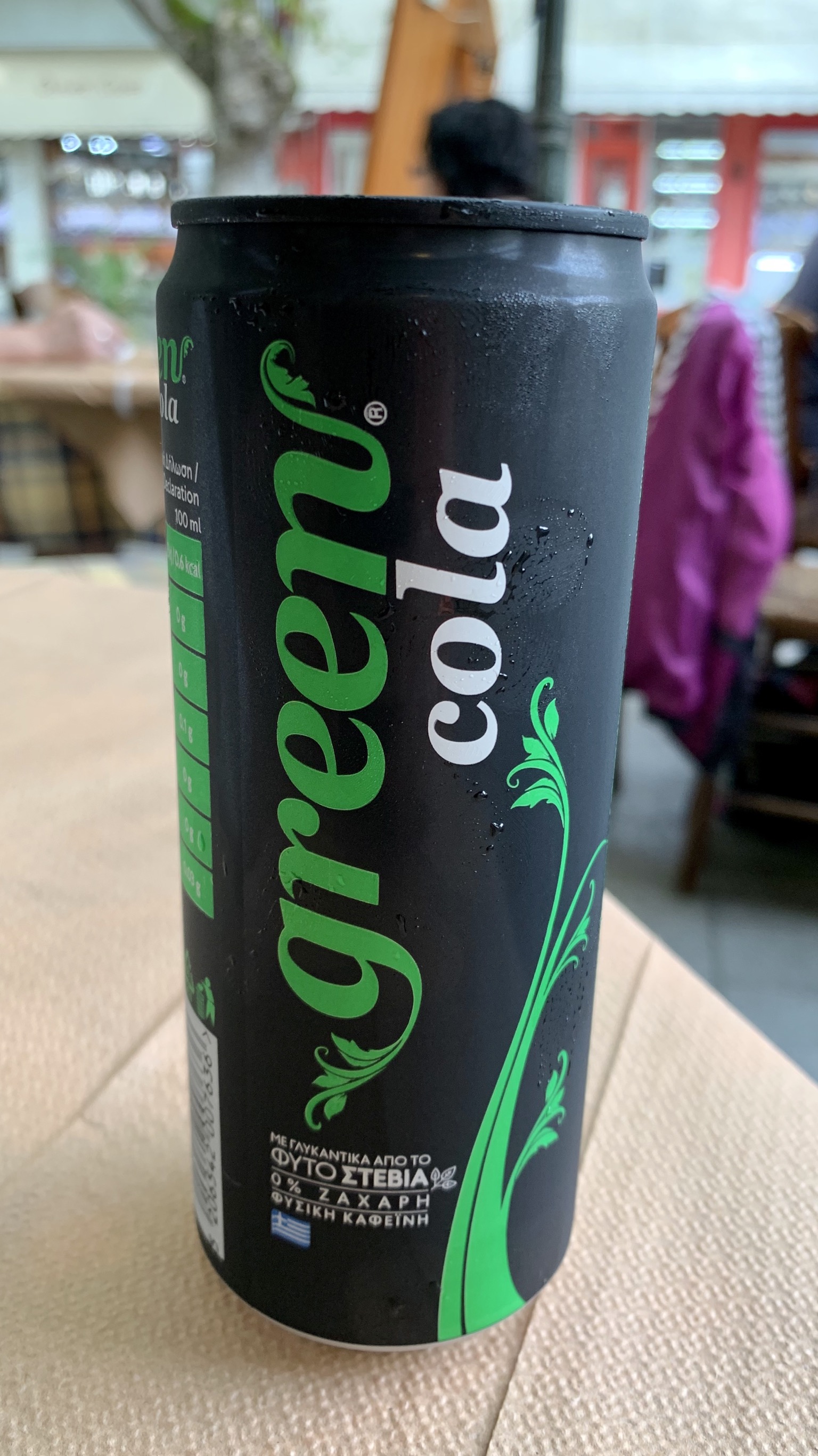 Aber auch das haben wir in Olympia entdeckt – etwas, das wir noch nie zuvor gesehen hatten: ‚green cola‘ – quasi Cola Light mit Stevia gesüßt (als kleinen Beitrag zu den ‚tails of the unexpected‘, also den ‚unerwarteten Endungen‘ eines Themas…)