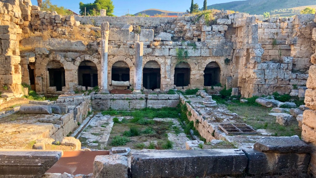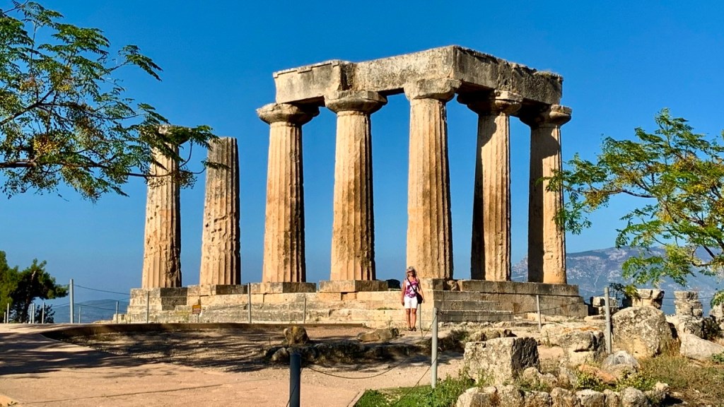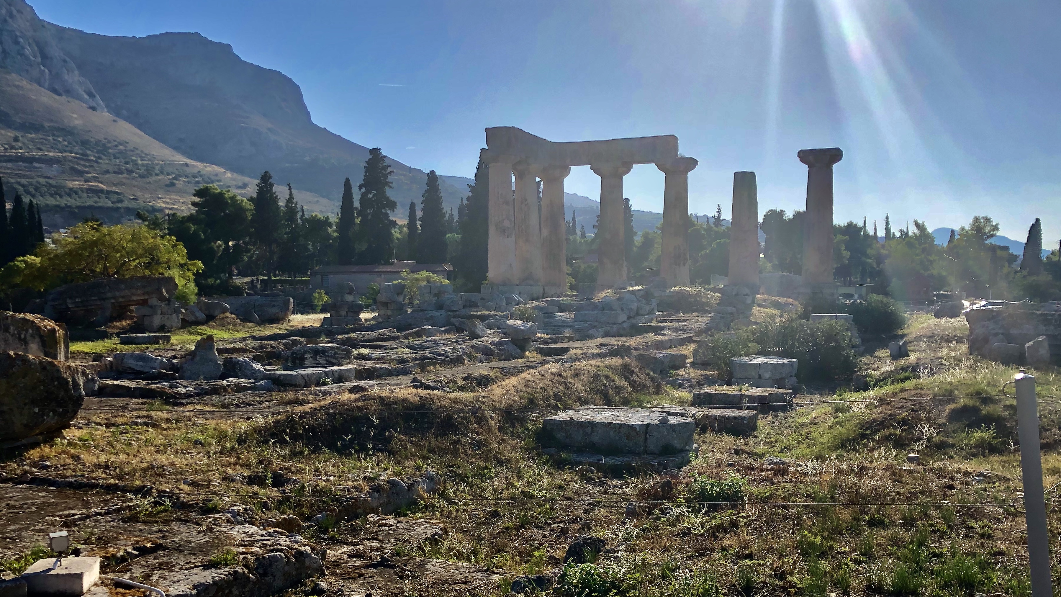 Von hier aus fuhren wir direkt nach Korinth. Wer ein bisschen bibelfest ist, weiß, dass Paulus hier – das heißt, natürlich in der antiken Stadt Korinth – zu den Menschen gesprochen und ihnen auch Briefe, eben die biblischen Korinther-Briefe, geschrieben hat. Das bedeutendste Bauwerk hier ist wohl der Apollon-Tempel. Etwas abseits der Stadt steht der Tafelberg, auf dem sich die Festung ‚Akrokorinth‘ befindet. Lassen wir wieder ein paar Bilder sprechen…