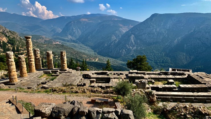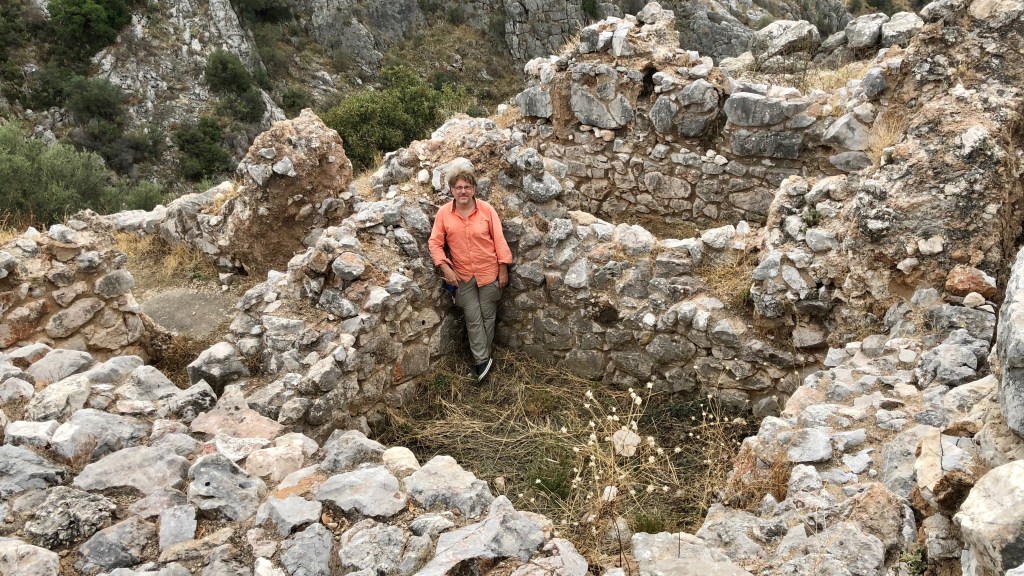 Und hier sind wir schon beim Thema: Antike. Tief sind wir hineingetaucht ins antike Griechenland, als da wären: Olympia (berühmte Sportstätte), Mykene (antike Stadt), Epidauros (antikes Theater), Korinth (bekannt aus den biblischen Paulusbriefen), Athen (Akropolis), Kap Sounion (Poseidontempel) und Delphi (Kultstätte mit dem Orakel). Nicht antik, sondern teilweise immer noch aktuell, sind die faszinierenden Meteoraklöster, die waghalsig anmutend auf riesigen Felsen und Berggipfeln stehen – inmitten einer atemberaubenden Landschaft. Überhaupt, das ist neben der in Griechenland omnipräsenten Antike der andere bleibende Eindruck: die Landschaft, Meer und Berge, Baumwollfelder, die Spannungsbögen von Betonstädten zu bezaubernden Dörfern sowie von antiken Ausgrabungsstätten zu dem ‚Snack‘-Automaten neben dem ‚Ticket-Office‘.