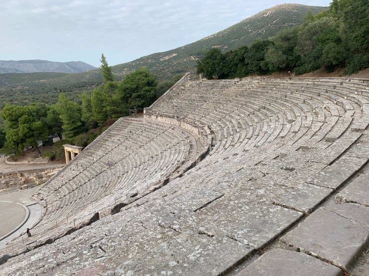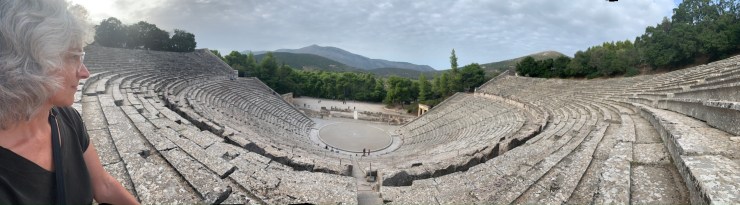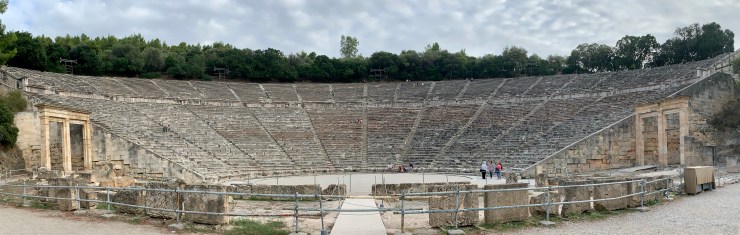 An diesem Tag absolvierten wir ein touristisches Mammutprogramm. Denn direkt nach unserem Besuch von Mykene fuhren wir nach Epidauros, und besichtigten das berühmte antike Theater mit den dazugehörigen Ausgrabungsstätten und dem Museum, nachdem laut Ticketverkäufer dies alles in der guten Stunde zu bewältigen sei, bevor die Tore geschlossen wurden. Das Besondere des Theaters ist bekanntlich seine bemerkenswerte Akustik. Man kann eine im Zentrum der Bühne fallende Münze noch auf den oberen Rängen hören. Hier wieder ein paar Bilder dazu: