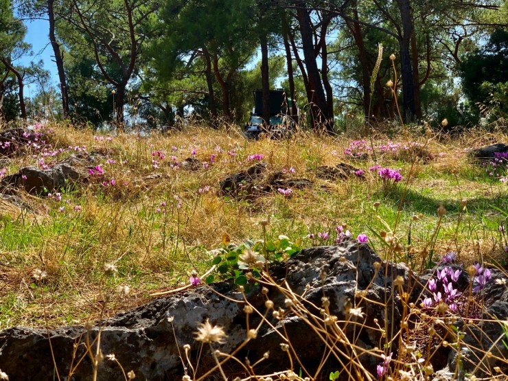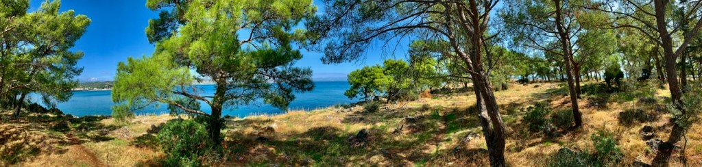 Die Entscheidung war goldrichtig. Der Platz war einfach großartig. Umgeben von lichtem Wald, durch den fast ringsum das Meer zu sehen war. Und es gab ein total lauschiges Plätzchen direkt am Wasser unter dem Schatten eines schönen Baumes, umgeben von wild wachsenden Alpenveilchen…
