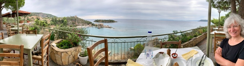 Auch Epidauros gibt es als heutigen Ort. Hier fanden wir neben einem Lagerplatz auch eine ganz entzückende Taverne mit einem Orangengarten und sehr leckeren griechischen Speisen. Da haben wir zu Abend gegessen – und am nächsten Tag gleich nochmal zu Mittag: