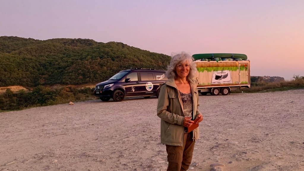 Auf dem Weg dorthin sahen wir an den Straßenrändern über viele Kilometer irgendwelches weißes Zeugs herumliegen. Zuerst dachten wir: „Welch eine Umweltverschmutzung, all diesen Papiermüll herumzuwerfen!“ Nach und nach sahen wir, dass das etwas Anderes sein musste. Aber was? Wir spekulierten auf Schafwolle, die von Lastern gefallen war. Aber Schafe werden jahreszeitlich früher geschoren. Conny ist in sowas ganz firm. Wir beschlossen, bei nächster Gelegenheit anzuhalten, um das weiße Mysterium näher zu untersuchen. Doch bevor uns dies möglich war, sahen wir, was es war. Auf dem nächsten Video kannst du es auch sehen…