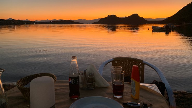 Auf dem Weg zur berühmten antiken Stadt Mykene legten wir noch einen Stopp in Leonidio ein, wo wir direkt auf dem Sandstrand einen Schlafplatz fanden – und am nächsten Morgen aus dem Bett durchs Moskitonetz einen wunderbaren Sonnenaufgang beobachten konnten.