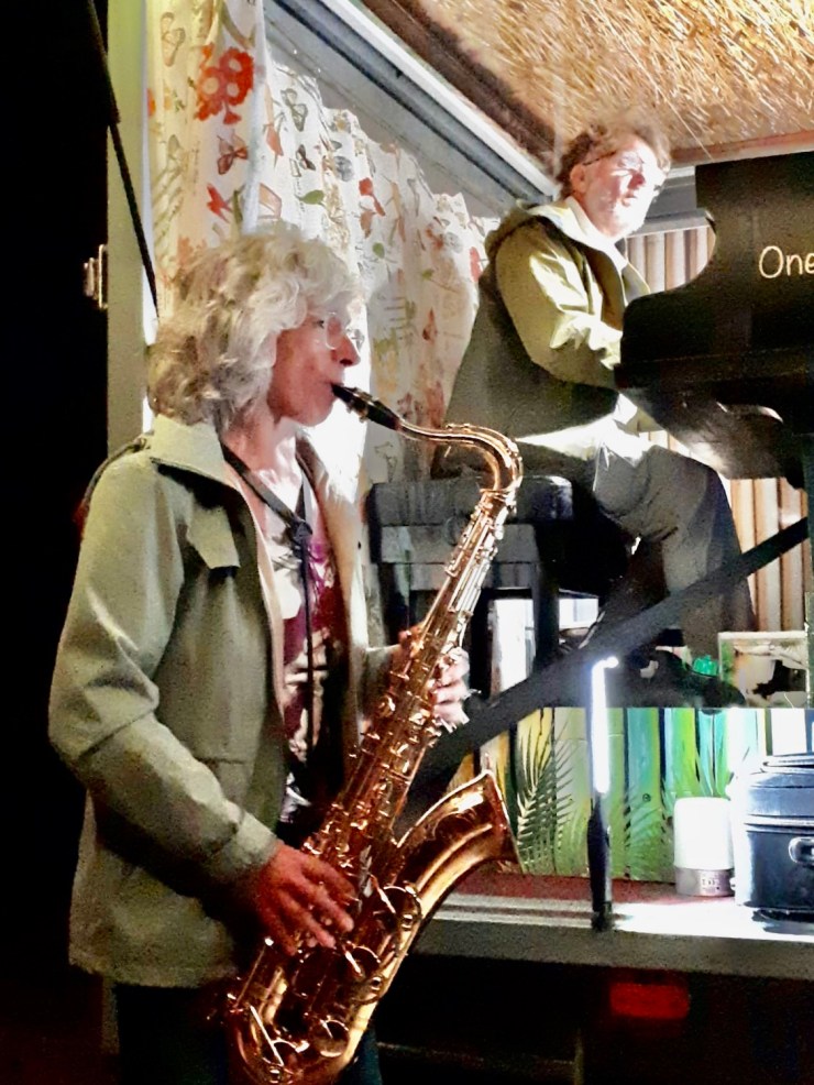 Unsere liebe Camp-Nachbarin Helma überließ uns netterweise ein paar kleine Ausschnitte ihrer Mitschnitte, die sie aus ihrem Liegestuhl heraus aufnahm, während da ein bisschen Musik gemacht wurde – einmal abends und zweimal um die Mittagszeit: