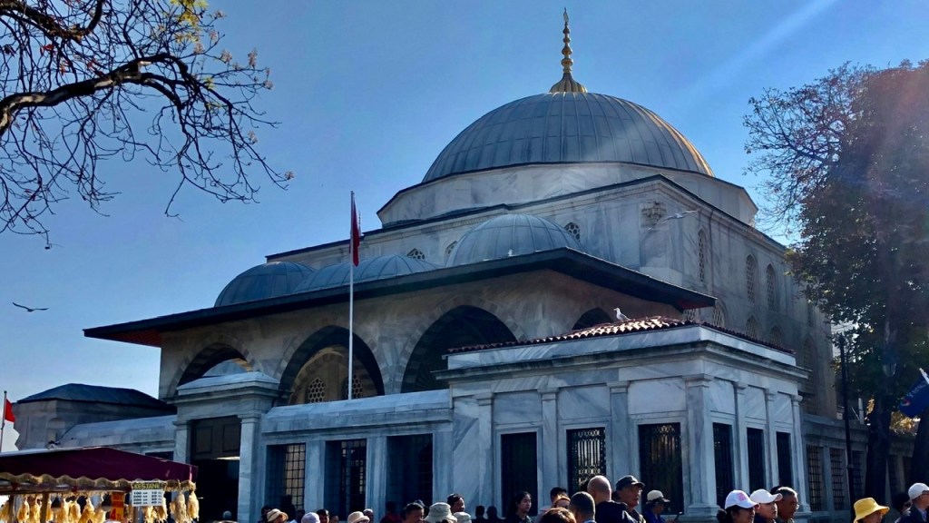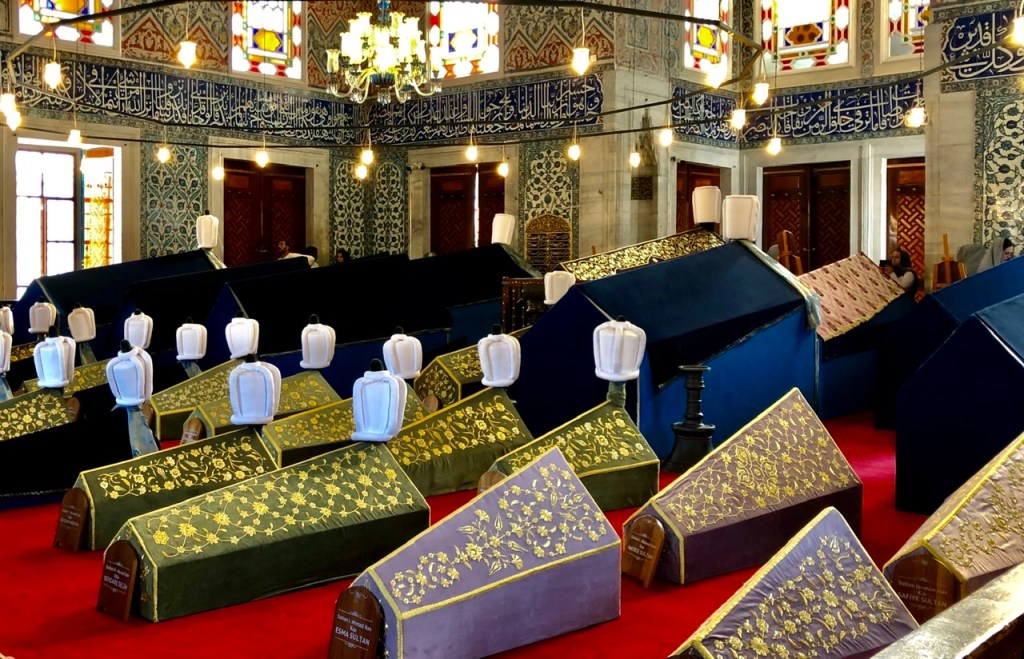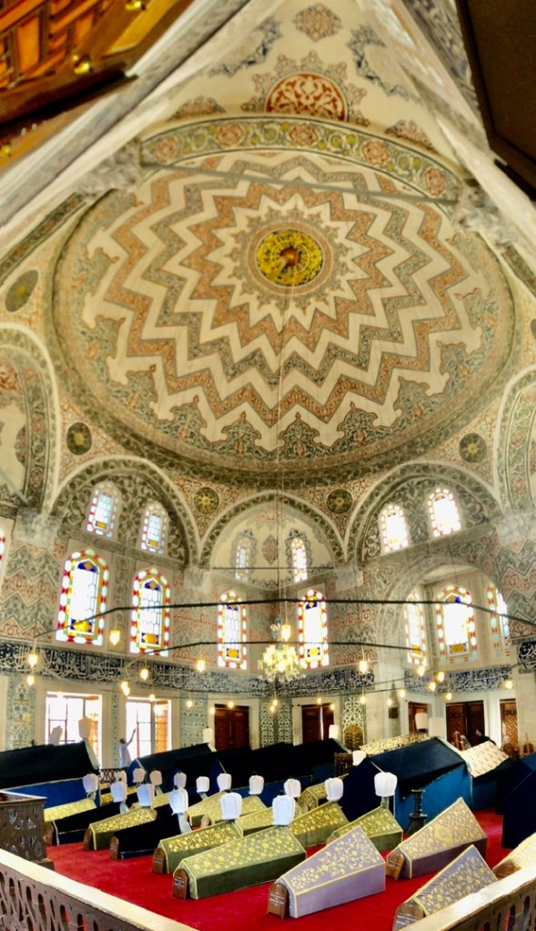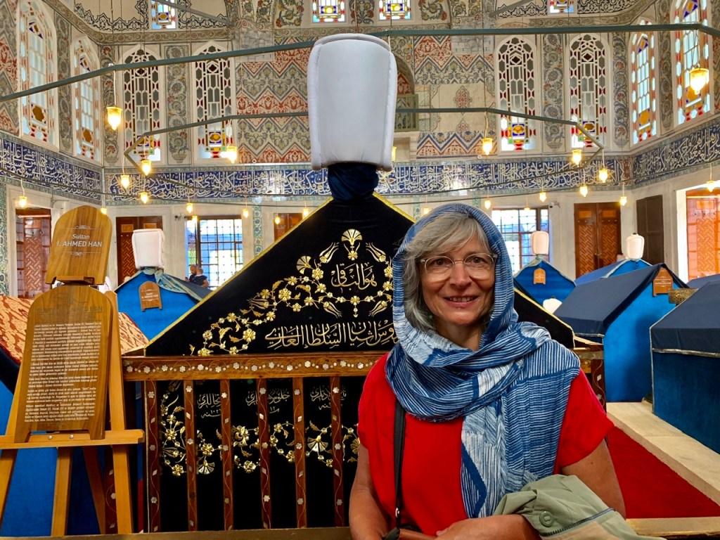Unweit der ‚Blauen Moschee‘ befindet sich ein anderes sehenswertes Gebäude: das ‚Sultan-Ahmed-Mausoleum‘, also seine Grabstätte und die seiner Familienmitglieder. Darunter befinden sich auch zahlreiche Kindersärge. Im Internet kann man lesen, dass hier wohl Opfer und ihre Mörder friedlich nebeneinander ruhen…
