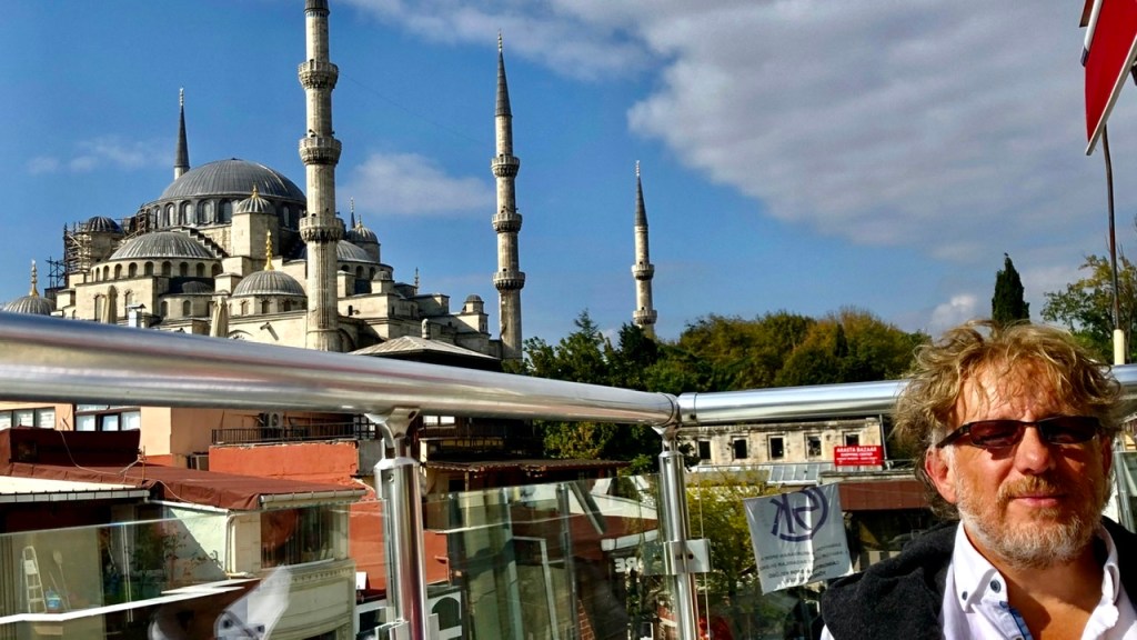 Am nächsten Tag frühstückten wir auf der Hochterrasse eines Restaurants, das auf dem Weg zur ‚Blauen Moschee’ lag. Dort oben konnte man es sich aussuchen, ob der Blick gen Moschee gerichtet sein sollte oder ob man zum Bosporus hinabschauen wollte. Das hatte was…