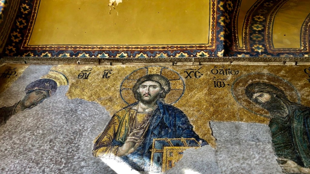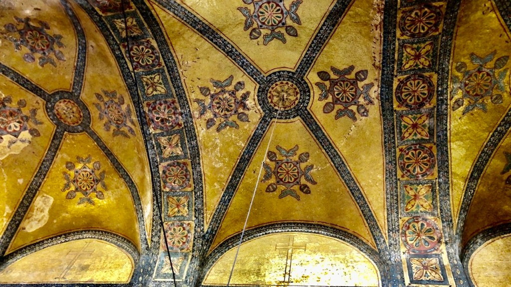 Die Innenräume der ‚Hagia Sophia‘ sind wirklich beeindruckend. Besonders faszinierend sind die aufwendigen Mosaike. Fast alle goldenen Oberflächen sind aus kleinen Steinchen zusammengesetzt: