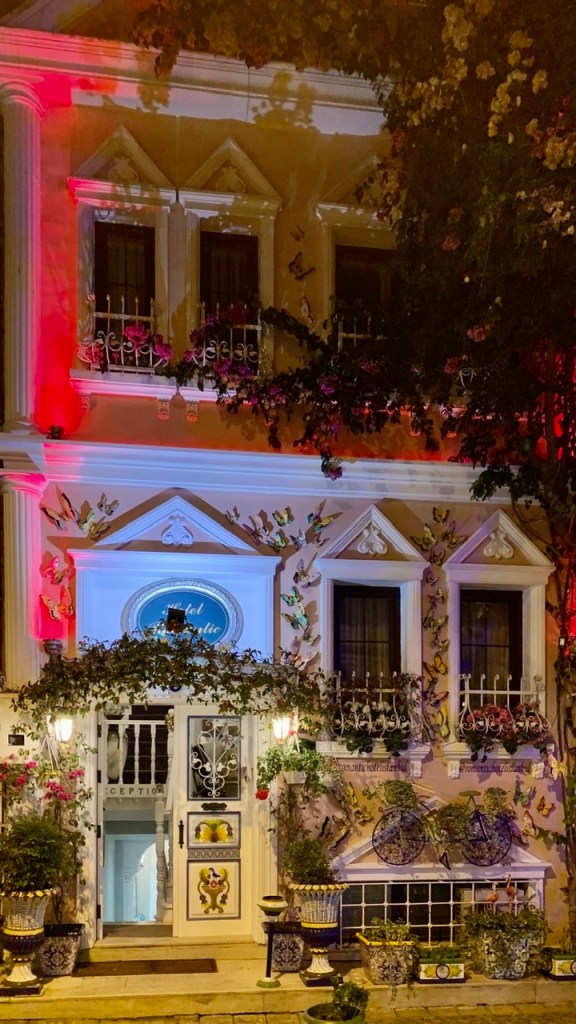An diesem Abend erkundeten wir gleich die nähere Umgebung auf der Suche nach einem geeigneten Restaurant. Dabei entdeckten wir zwei kleine Hotels, deren äußere Gestaltungen für unser vorgefasstes Bild über Istanbul absolut in unsere Rubrik „Unerwartetes“ passten: