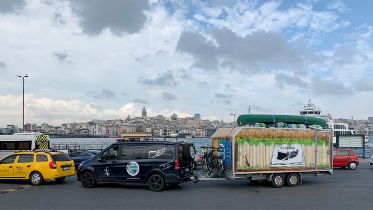 Wir hatten Griechenland verlassen und standen an der türkischen Grenze. Nach längeren, für uns unverständlichen Diskussionen der Beamten im Zollgebäude über unser Anliegen, mit unserem Gefährt samt Flügel mit Elfenbeintasten und einem Kanu auf dem Anhänger in die Türkei einzureisen, ließen sie uns schließlich passieren.