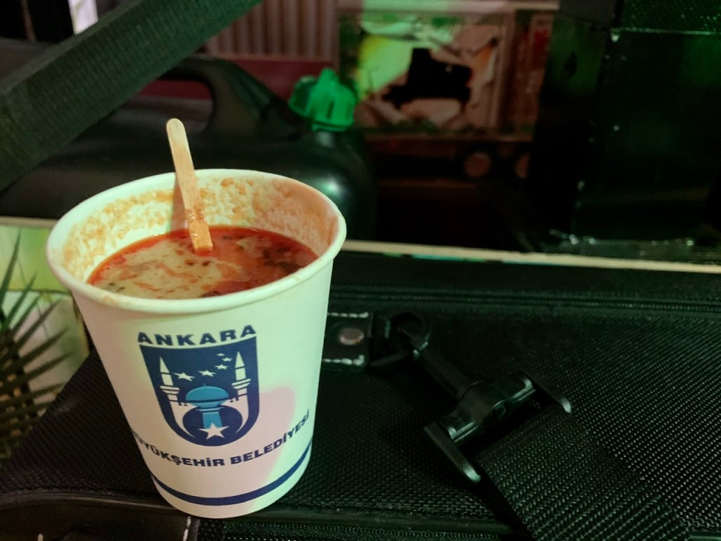 Nachdem wir von unserem abendlichen Spaziergang wieder am Auto angekommen waren setzte ich mich bei geöffneter Seitenklappe an den Flügel, um noch etwas zu üben. Wir hatten das Gefährt so an der Seite geparkt, dass gegenüber nur noch ein Gehsteig und eine Mauer war. Kurz nachdem ich begonnen hatte, erschienen zwei uniformierte Männer von der Sicherheit, um zu sehen, was da los ist. Sie bewachen den Parkplatz rund um die Uhr. Kurz darauf verschwanden sie wieder. Einige Zeit später tauchten sie nochmals auf, und ich befürchtete schon, ich müsste aufhören zu spielen. Doch – wir waren ja in der Türkei! Sie waren um mein Wohlbefinden besorgt, denn es war ziemlich kalt, und brachten mir deshalb einen Becher heiße Suppe…