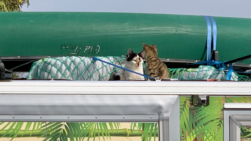 Wir hatten Asien erreicht. Noch in Istanbul beobachteten wir zwei kleine Kätzchen, die auf unserem geparkten Anhänger herumturnten. An unserem nächsten Nachtplatz an einem großen Restaurant in Düzce, irgendwo zwischen Istanbul und Ankara bemerkten wir, dass die beiden als blinde Passagiere auf dem Anhängerdach mit uns gereist waren. Irgendwann hüpften sie herunter – und mussten sich wohl ein neues Zuhause suchen…