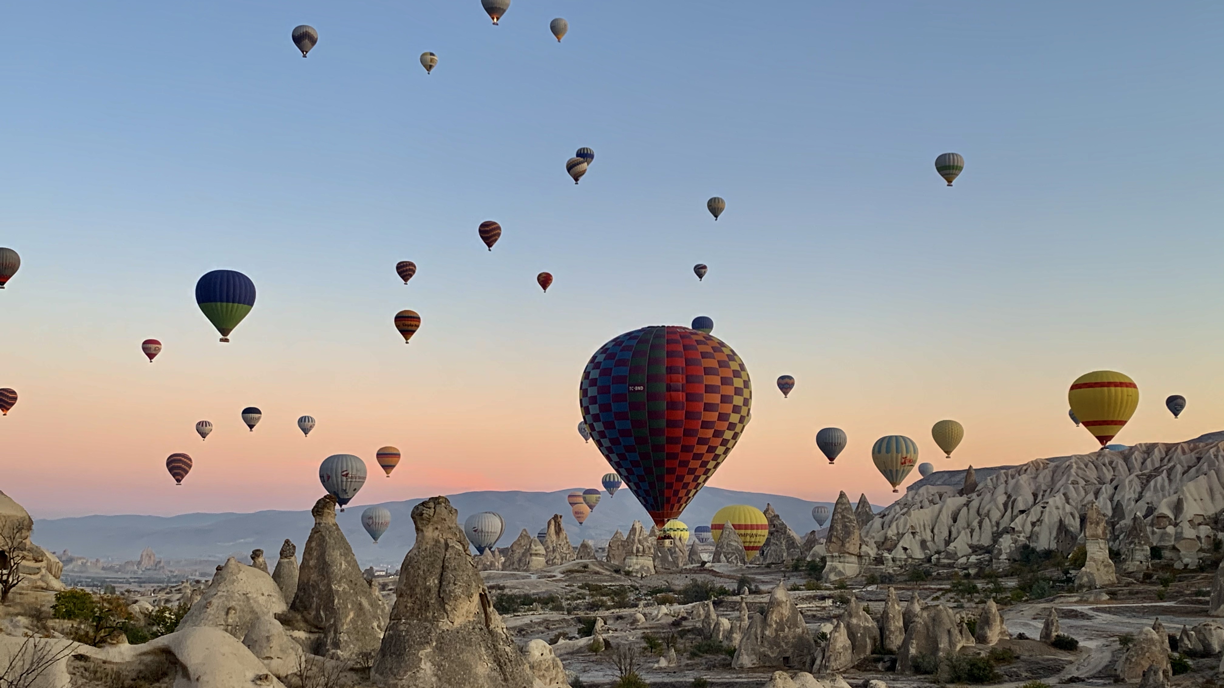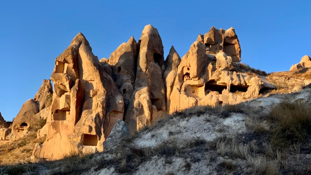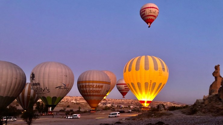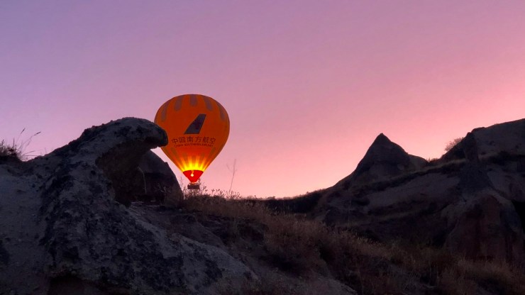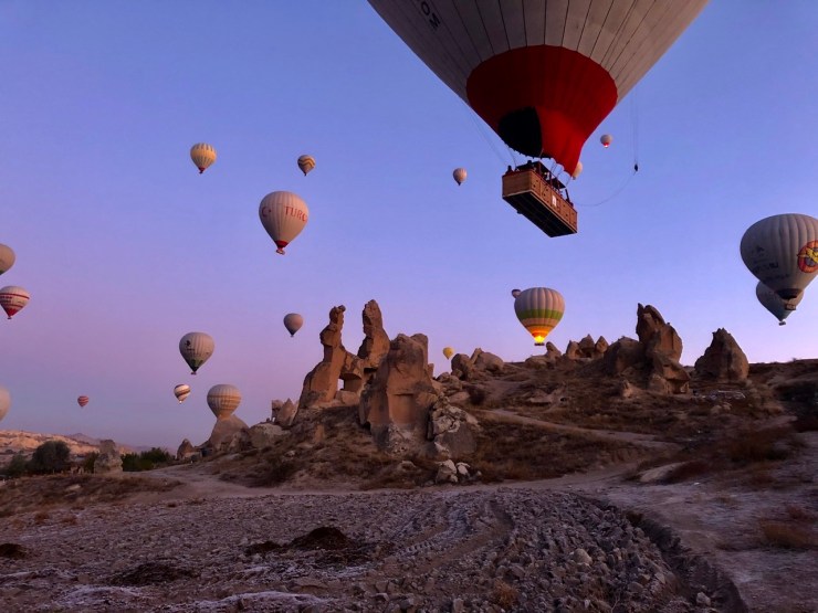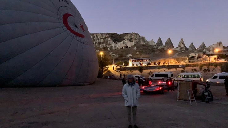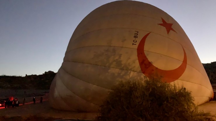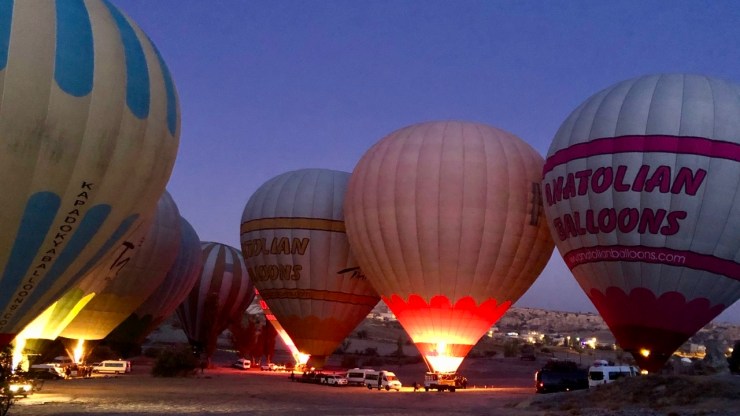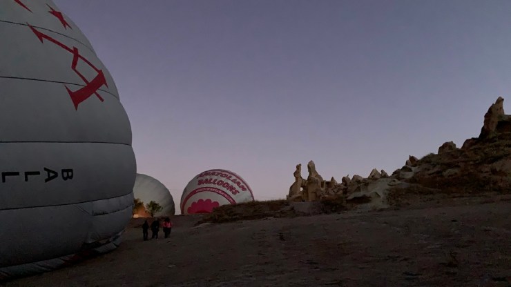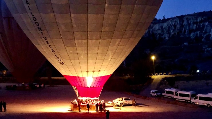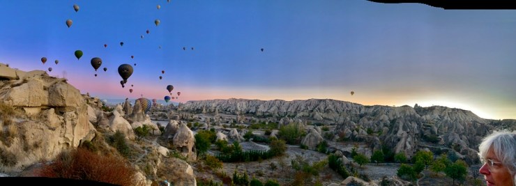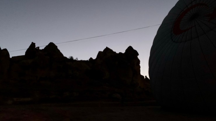 Wir hatten in Erfahrung gebracht, dass, wenn das Wetter mitspielt, ganz früh morgens – noch vor Sonnenaufgang – Heißluftballone mit Touristen untendran aufsteigen, um den Sonnenaufgang über der bizarren Landschaft zu bewundern. Es sei, so hieß es, ein beeindruckendes pittoreskes Bild, den Aufstieg der Ballone schon allein von unten zu sehen.