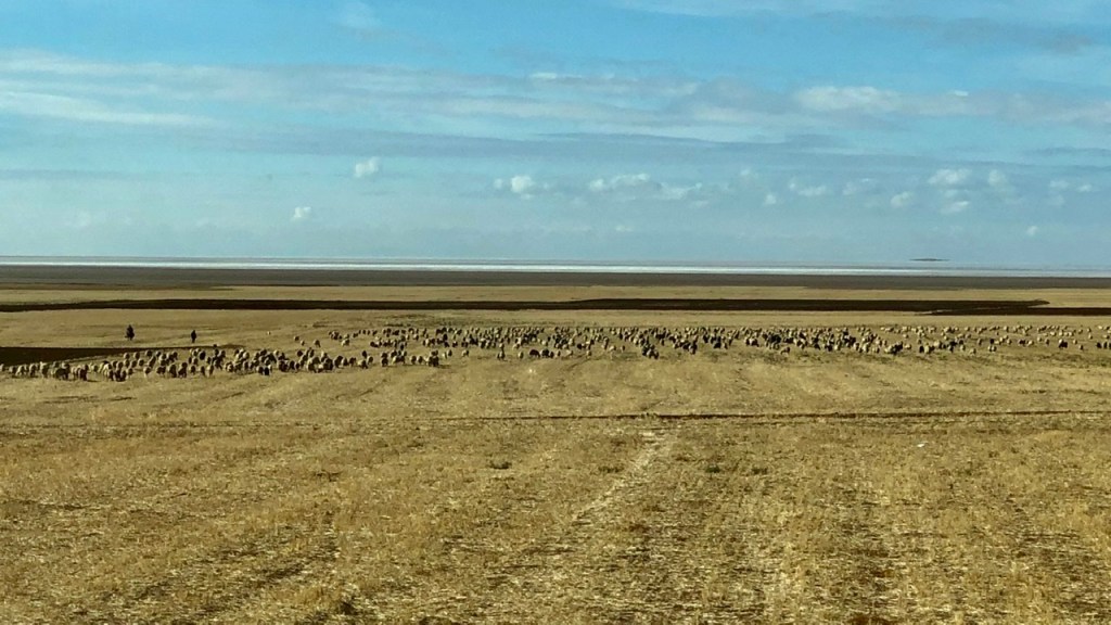 Schafe vor dem ‚Tuz Gölü‘, das heißt Salzsee