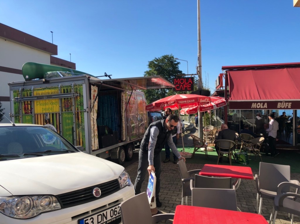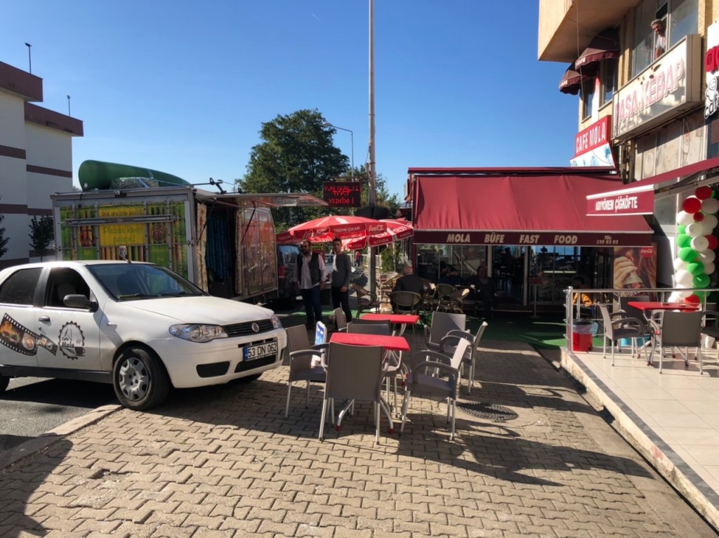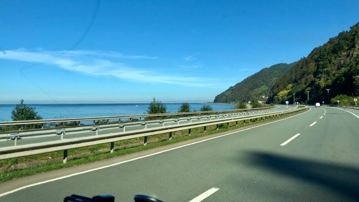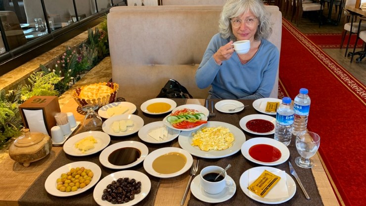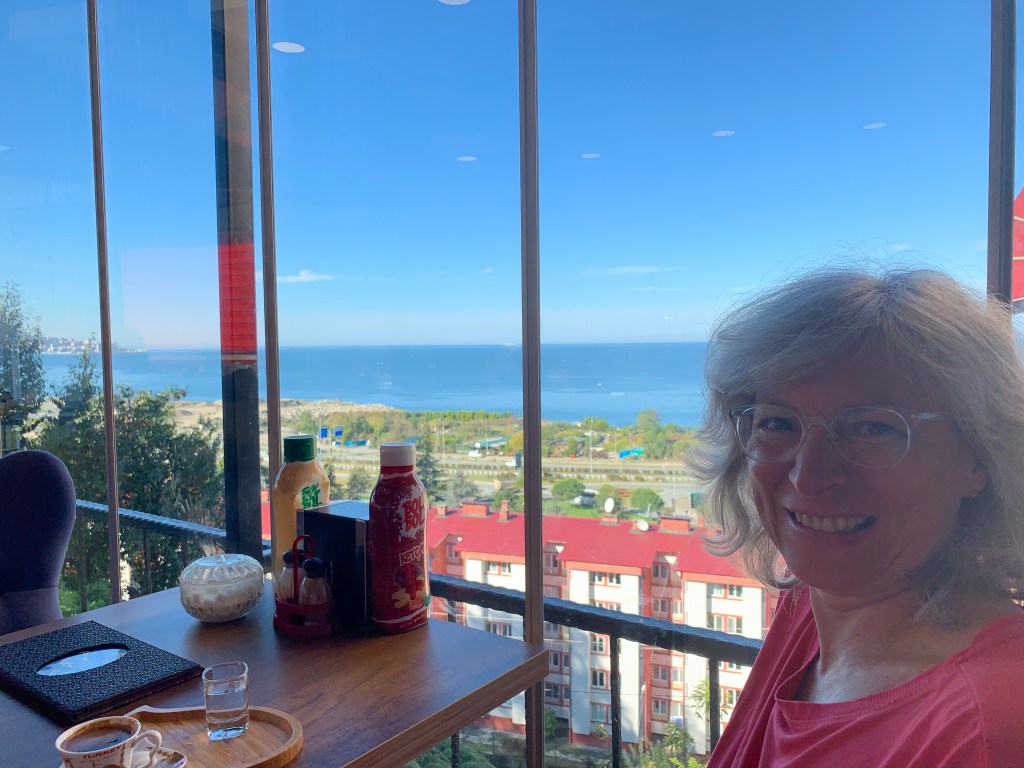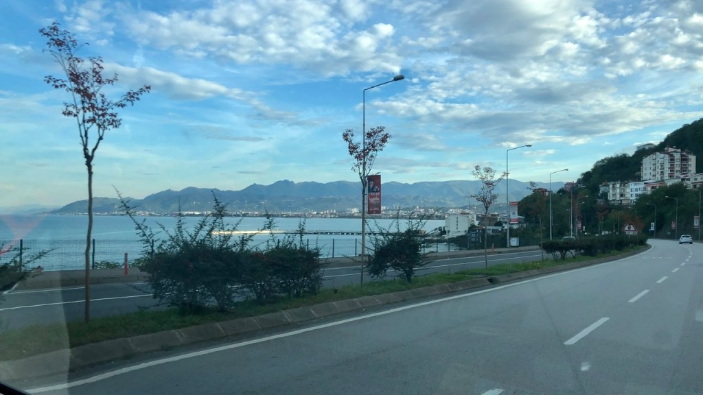 In Rize suchten wir am nächsten Morgen ein Café mit Parkplatz für unser Gespann, um dort zu frühstücken. Ich scherzte über diese gewünschte Kombination, denn nach Parkplatz sah es in Rize überhaupt nicht aus. Aber – doch, wir fanden in der Nähe der Uniklinik ein hübsches Café mit einer Glasfront, das einen weiten Blick über das Schwarze Meer bot.