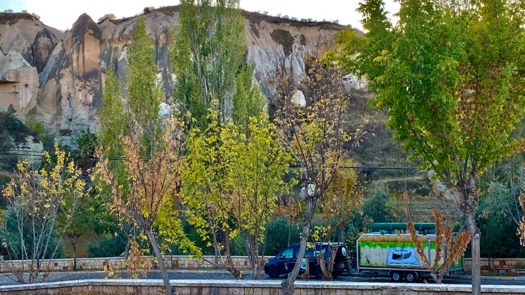 Wir platzierten und verzurrten das neue Ersatzrad auf dem Anhängerdach und fuhren los in Richtung Derinkuyu in Kappadokien, eine Region in Zentralanatolien, wo es eine der größten unterirdischen Städte gibt. Auf der Fahrt dorthin ‚knackten‘ wir die 5.000 Kilometer-Marke…