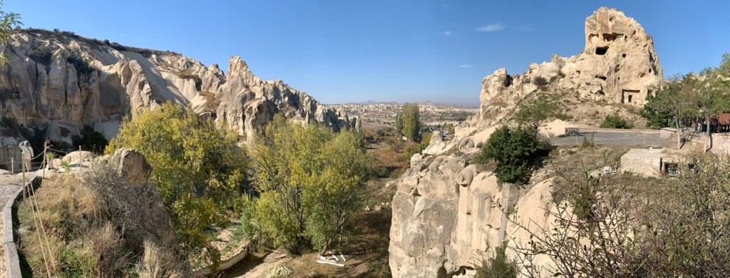 Da wir noch Zeit hatten fuhren wir gleich noch nach Göreme im gleichnamigen Nationalpark, der auch zu Kappadokien gehört. Vor unserer Reise, hatten wir noch nie etwas davon gehört. Doch in Griechenland bei den Meteoraklöstern trafen wir ein älteres Ehepaar, er Türke, sie Holländerin. Sie lebt mit ihrem Mann in der Türkei und spricht gut deutsch. Als wir ihr von unseren Reiseplänen erzählt hatten, erstellte sie eine ganze Liste von Orten in der Türkei – und auch in Georgien -, die sie uns empfehlen würde. Einer davon war Kappadokien. Nachdem uns diese Region später noch öfter angeraten wurde, entschlossen wir uns, dorthin zu fahren. Und es hat sich gelohnt!